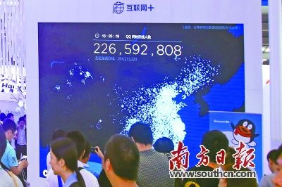 高交会腾讯展馆展示QQ同时在线人数。